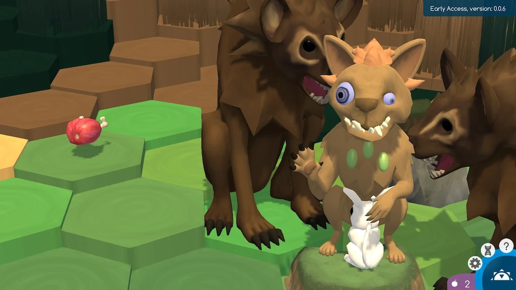 In the game of Niche, the player controls a tribe of animals called nichelings. In early versions of the game, they were simply called creatures. Nichelings have been described as having a canine-like or feline-like appearance (sometimes referred to as a "foxcat"), and have varying features and abilities depending on their genes. Clicking on a nicheling will select it and bring up its circular menu/GUI in the bottom left of the screen. Along with the creature's likeness, it will display the nicheling's name, lifespan and damage bar, gem colors, remaining actions, gender, and ranking. The four icons to the right can be clicked to display further information. The paw icon shows the nicheling's abilities, the DNA helix icon displays their gene bar, the mutation icon opens the mutation menu, and the icon with three nichelings opens the family tree.